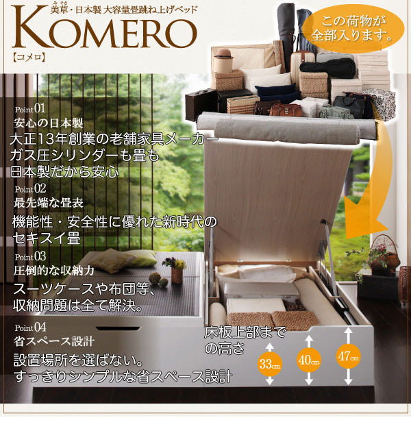 美草・日本製 大容量畳跳ね上げベッド【Komero】コメロ