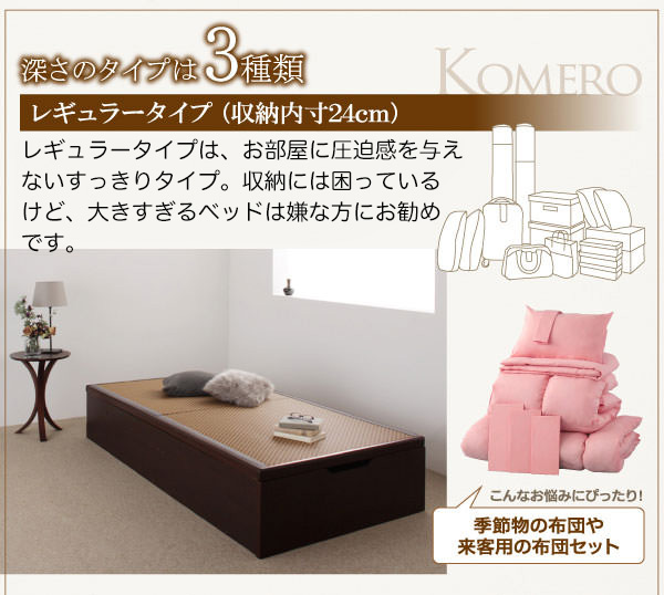 | 製品名: | 日本製 美草・大容量畳跳ね上げベッド【Komero】コメロ レギュラー・シングル |