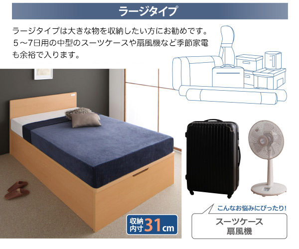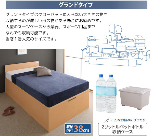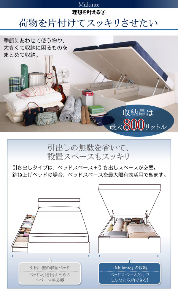 跳ね上げタイプなので床下は一面収納!最大800リットル。