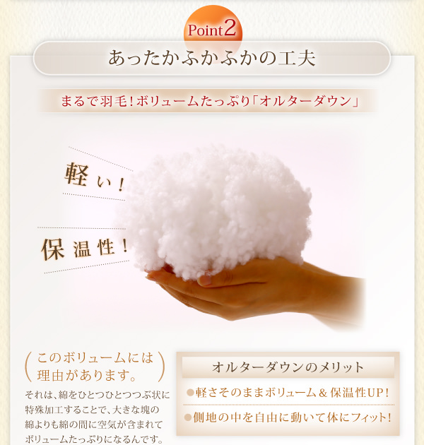 - まるで羽毛!ボリュームたっぷり「オルターダウン」