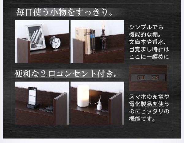 コンセント付きの便利でスマートなヘッドボード毎日の生活が快適に。