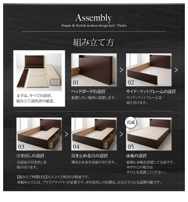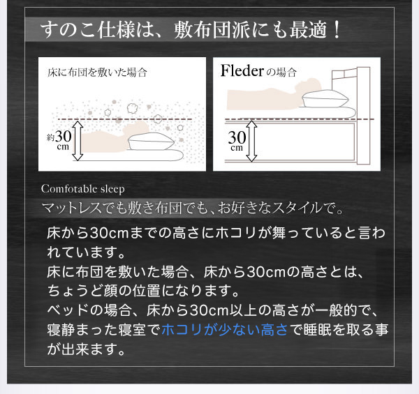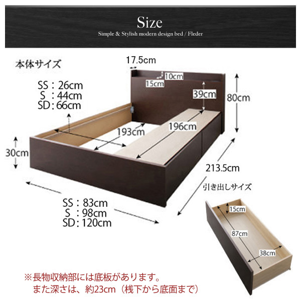 収納付きベッド【Fleder】フレーダーは、床板がすのこ板も選べる収納付きベッド。収納引き出しは、BOX構造を使用、ホコリが入りにくく、組み立ても簡単で、強度も保証付。こだわりのの日本製で安心して使いたい方!必見です。この商品は、【ベッドフレームのみ】すのこ仕様 セミシングルサイズです。