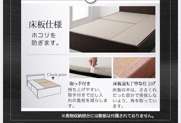 - ベッドの下は2杯の引き出しと長物収納スペース