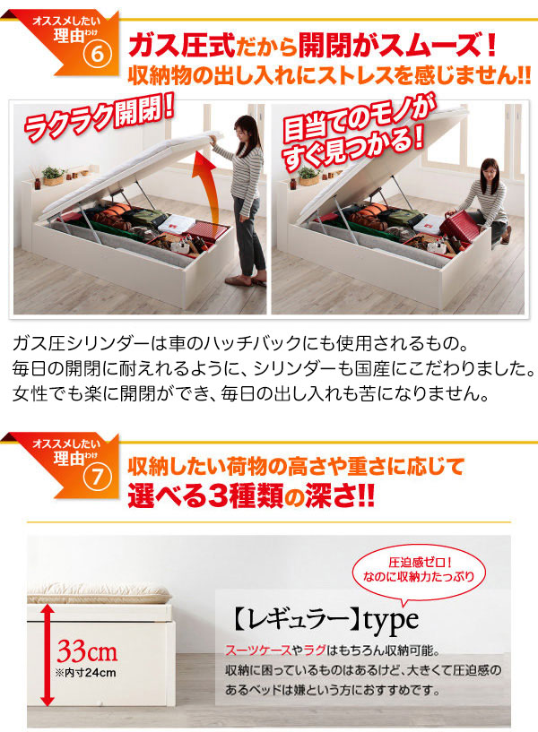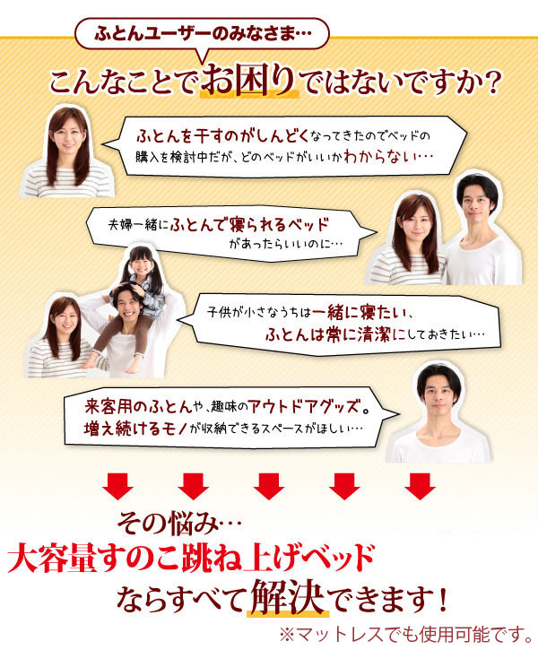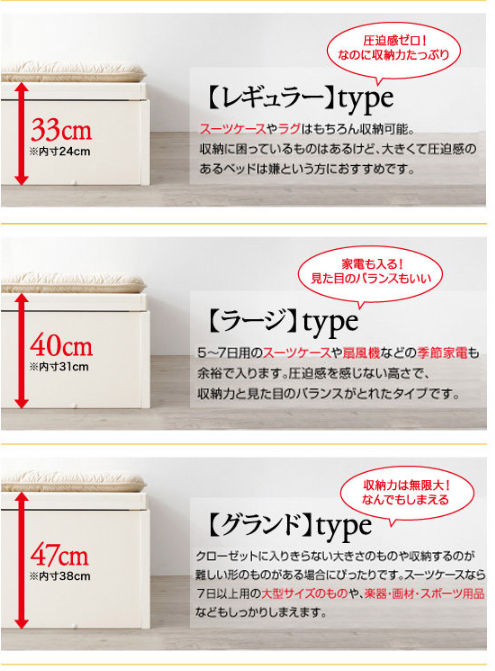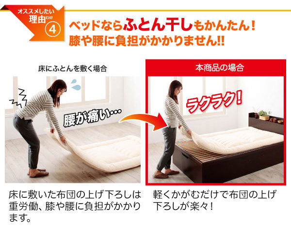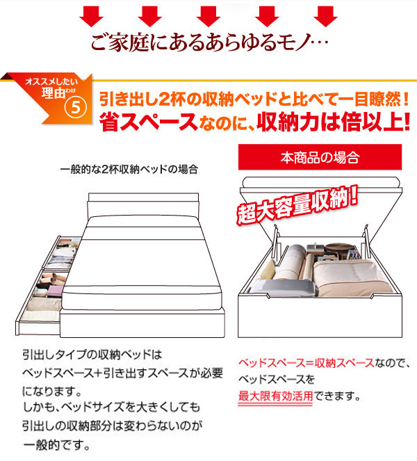 引き出し2杯の収納ベッドと比べて一目瞭然! 省スペースなのに、収納力は倍以上!!