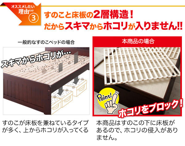 - 通気性バツグン&ホコリをブロック! オリジナル開発のすのこ床板