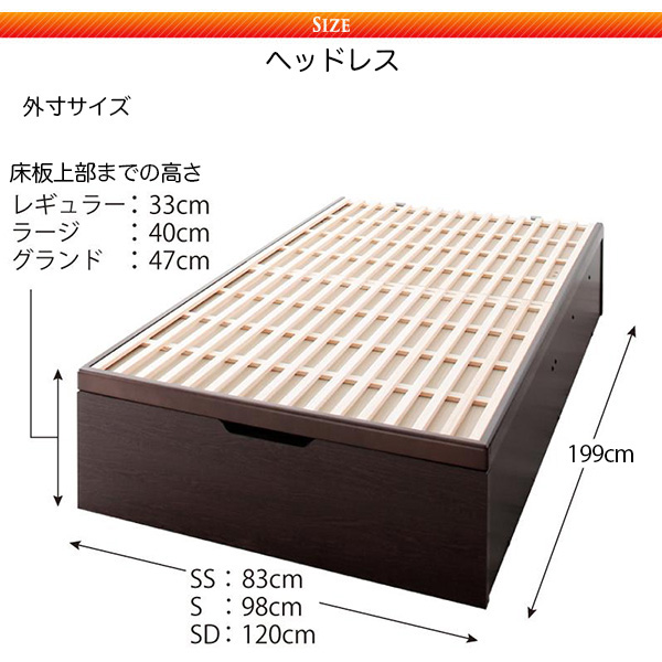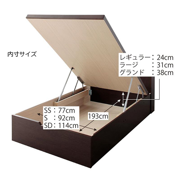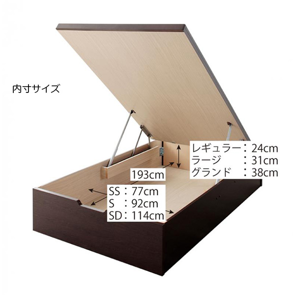 日本製 敷ふとん対応 すのこ跳ね上げベッド【Begleiter】ベグレイター日本製のオリジナル開発すのこ床板を採用した跳ね上げ式ベッド。すのこ板は、すのこ床板の2層構造、空気の通り道を確保し、隙間からホコリが入りにくい構造です。この商品は、ヘッド付【フレームのみ】 セミシングル 深さレギュラータイプです。