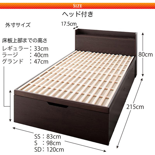 | 製品名: | 日本製 敷ふとん対応 すのこ跳ね上げベッド【Begleiter】ベグレイター ヘッド付【フレームのみ】 セミシングル 深さレギュラー |