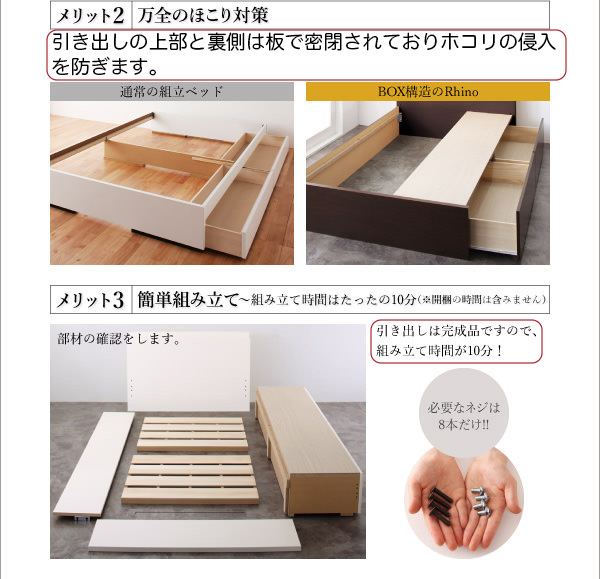 収納量・清潔さ・簡単組み立て…メリットいっぱいのBOX構造とすのこ床板