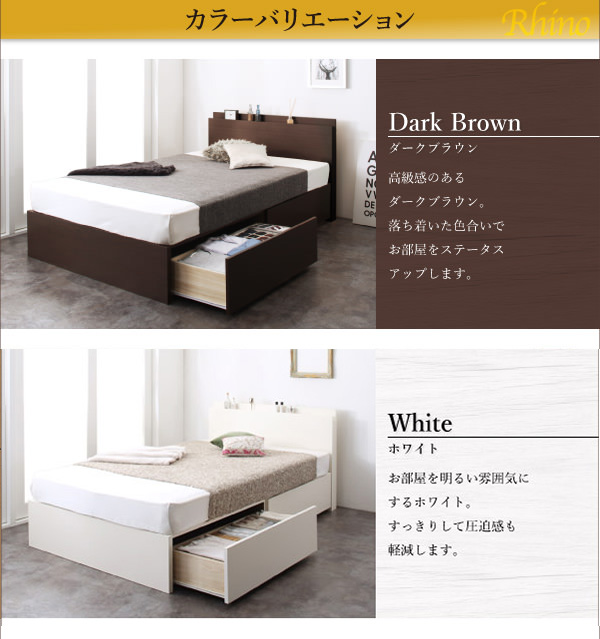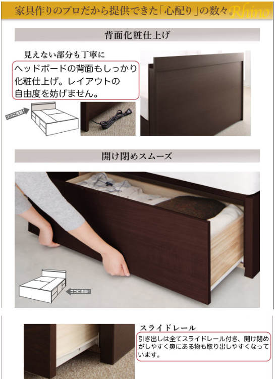 長く使える!日本製 丈夫な収納付きベッド【Rhino】ライノ