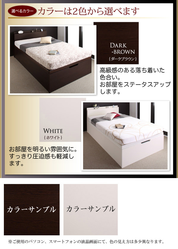 | 製品名: | 日本製 すのこ仕様 跳ね上げベッド【BERG】ベルグ ベッドフレームのみ 縦開き セミシングル 深さラージ |