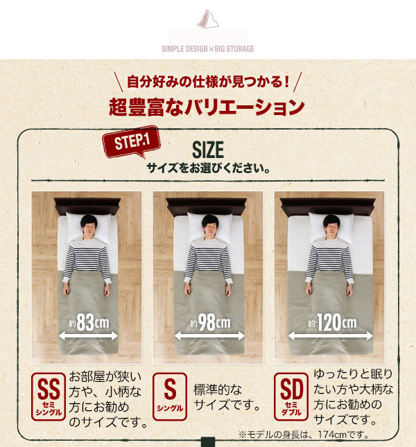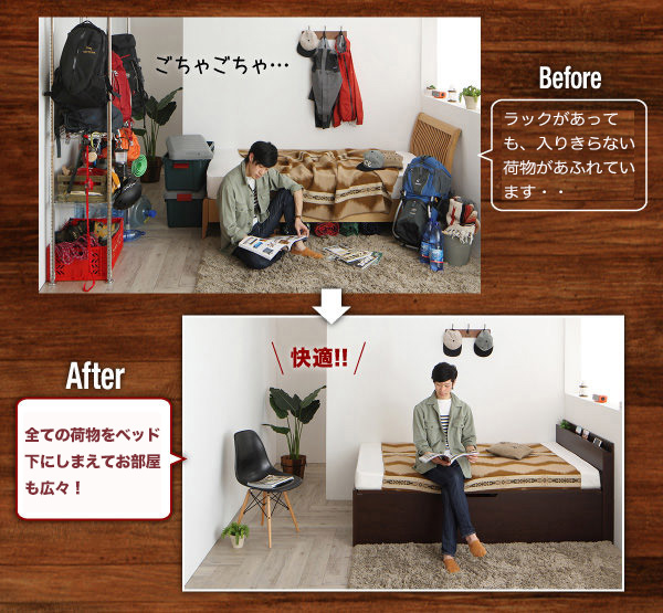 ベッドスペース=収納スペース。ベッドスペースを最大限利用でき、必要なスペースもコンパクトに収まります。