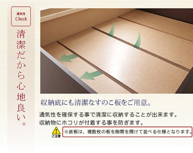 中材料には、インシュレーションボードを使用し断熱・防音にも優れており、ベッドに適した仕様になっております。