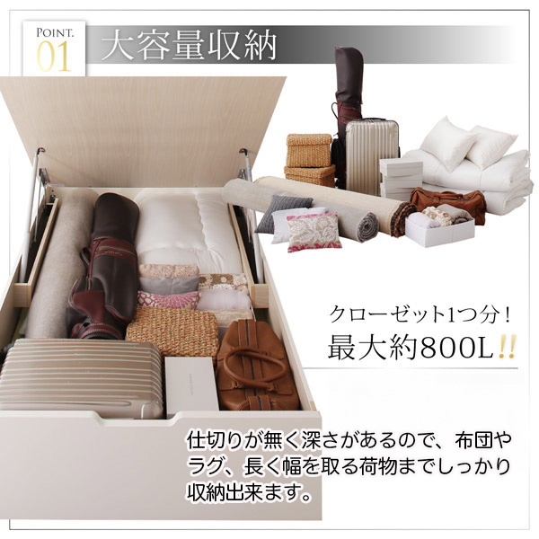 仕切りが無く深さがあるので、布団やラグ、長く幅を取る荷物までしっかり収納できます。