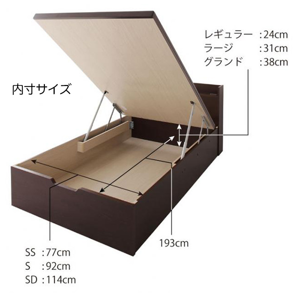 | 製品名: | 日本製 頑丈すのこ仕様 跳ね上げ式ベッド【Longforce】ロングフォルス シングル 深さグランド |