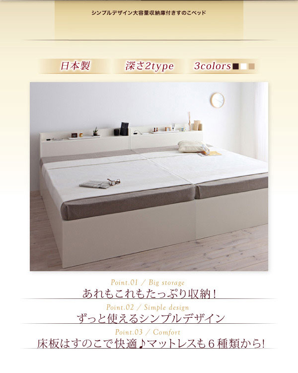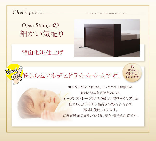 | 製品名: | 日本製 大容量収納付きすのこベッド【Open Storage】オープンストレージ 薄型抗菌国産ポケットマットレス付 セミダブル 深さレギュラー |