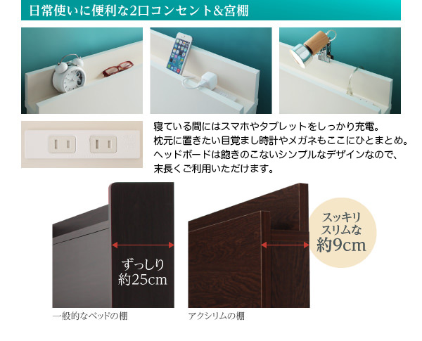 ヘッドボードは飽きのこないシンプルなデザインなので、末永くご利用いただけます。
