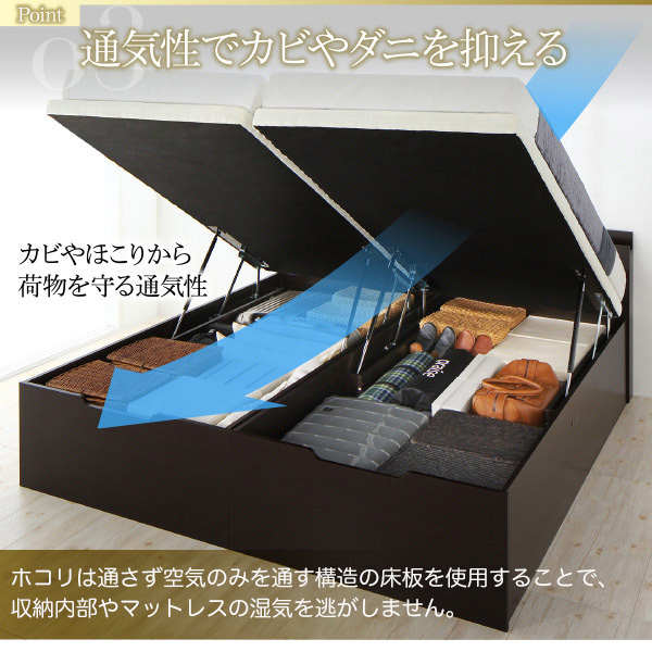 ほこりは通さず空気のみを通す構造の床板を使用することで、収納内部やマットレスの湿気を逃がします。