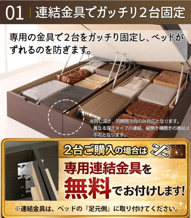 跳ね上げベッド【MARCH】は、日本製のスリムなヘッドボードを採用したオーダーメイド感覚の跳ね上げ式ベッド。専用金具で2台連結可能。この商品は、フレームのみ 縦開き シングル 深さグランドタイプです。
