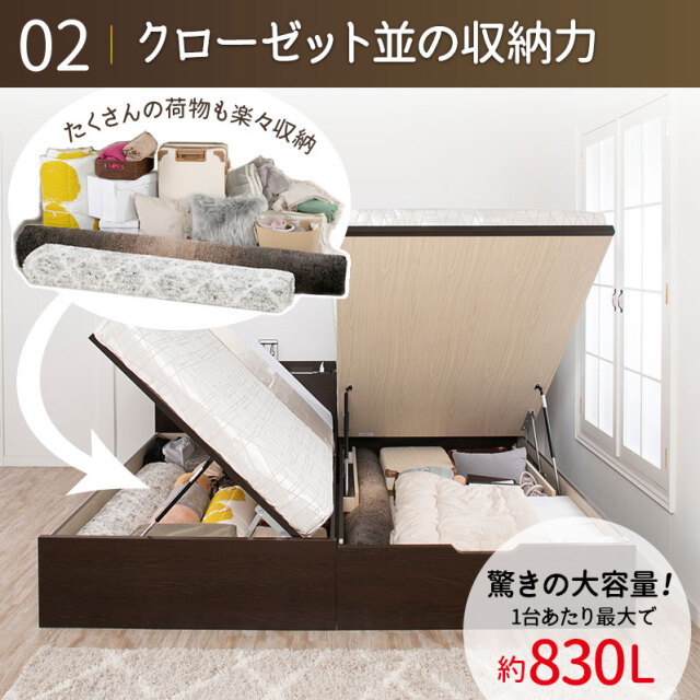 - 驚異の収納力・最大830L!ベッド下が一面収納の跳ね上げベッド