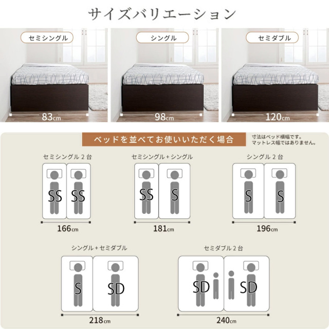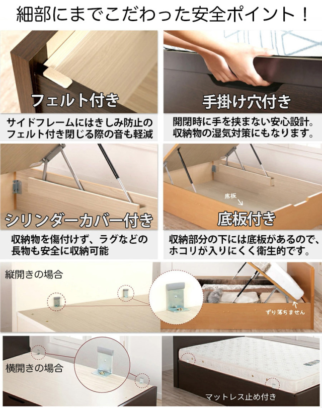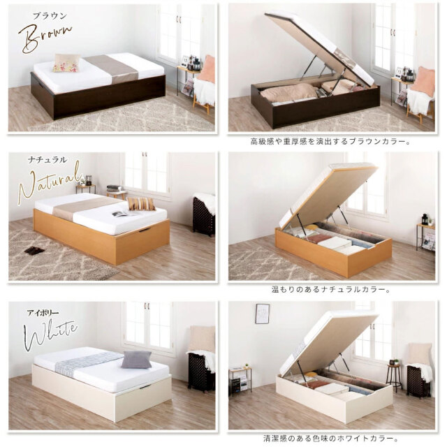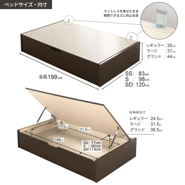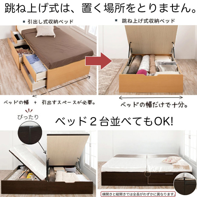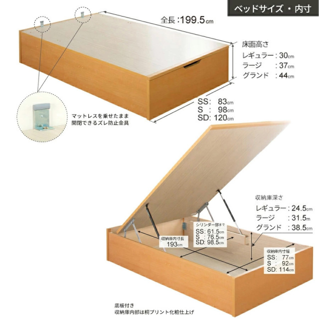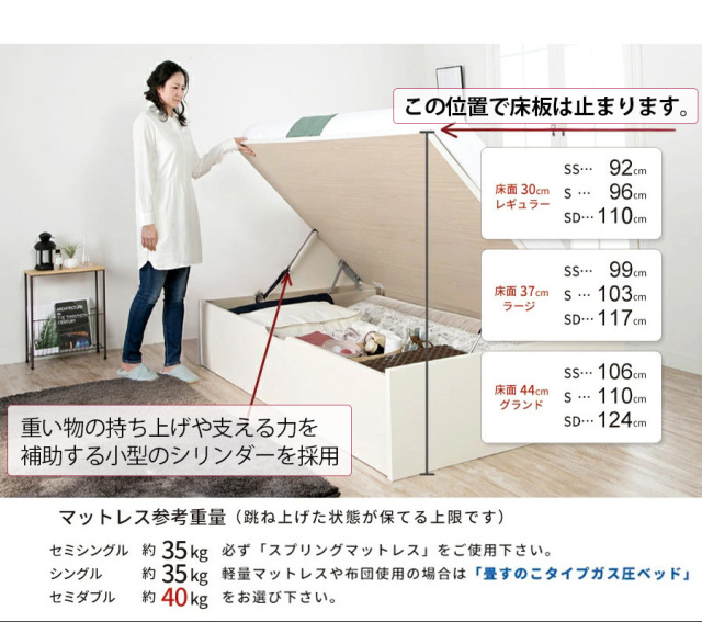 | 製品名: | 日本製 跳ね上げベッド【ヘッドレスタイプ】フレームのみ 横開き セミダブル 深さグランド |