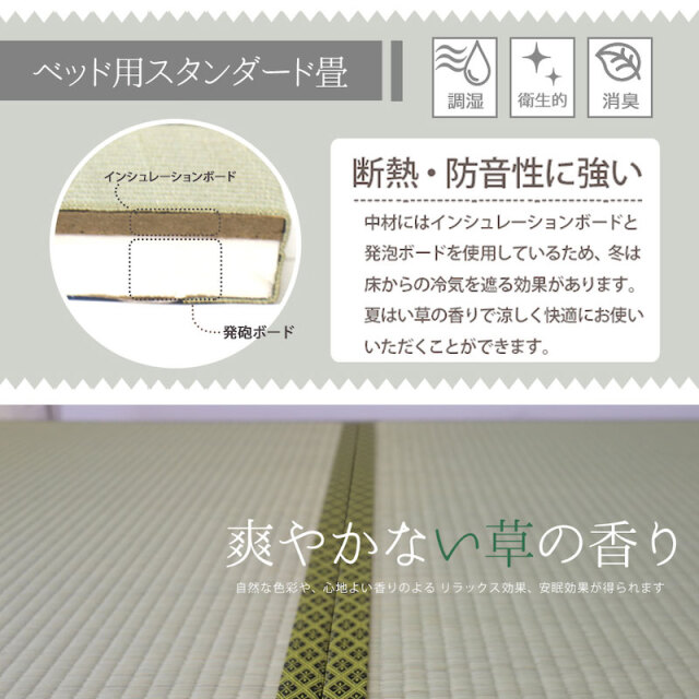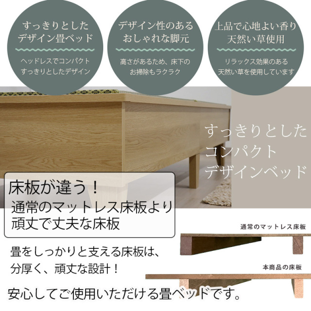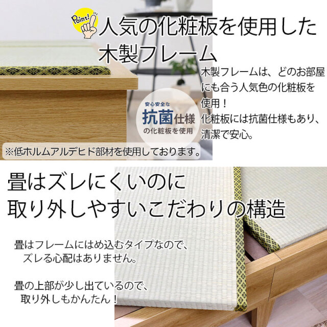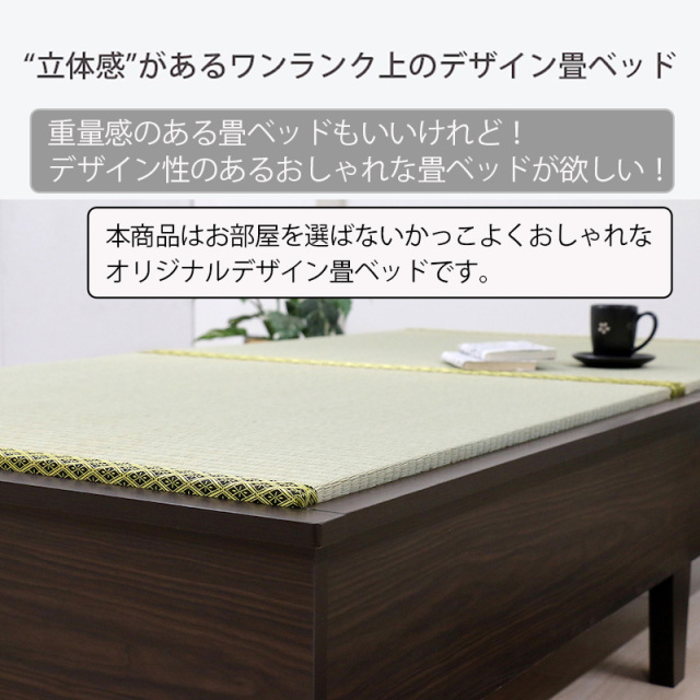 日本製 天然い草使用 デザイン畳ベッドは、畳はズレにくいのに取り出しやすいこだわりの構造。畳の上部が少し出ているので取り出しも簡単!日々のお手入れが楽に行うことができます。この商品は、ダブルサイズとなります。