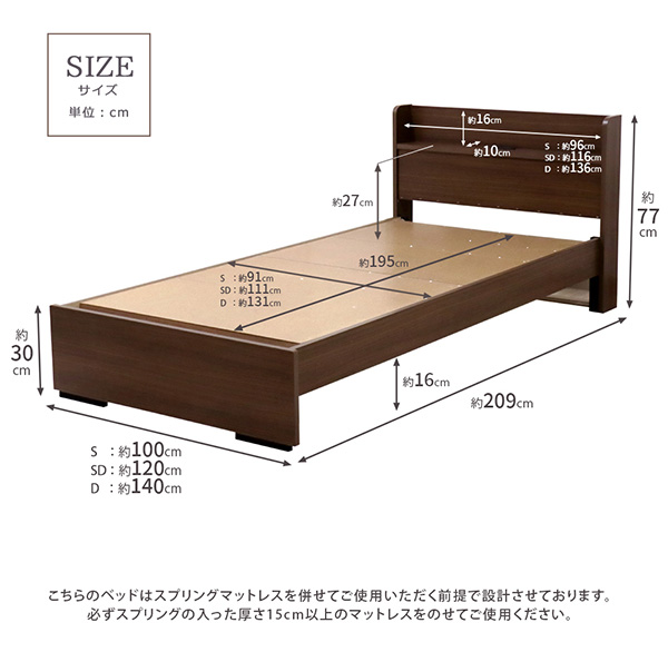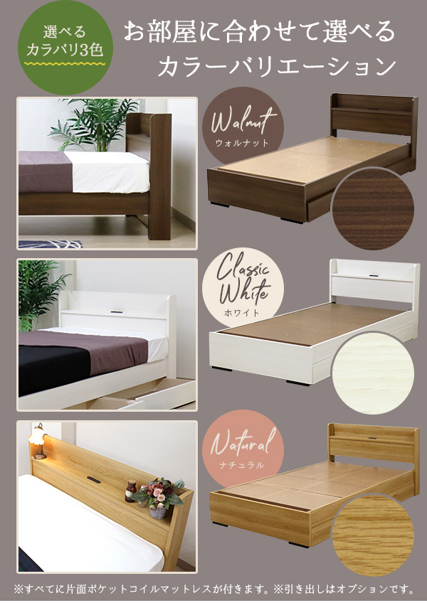 | 製品名: | 日本製 組立簡単!棚・コンセント付 収納付きベッド シングル フレームのみ |