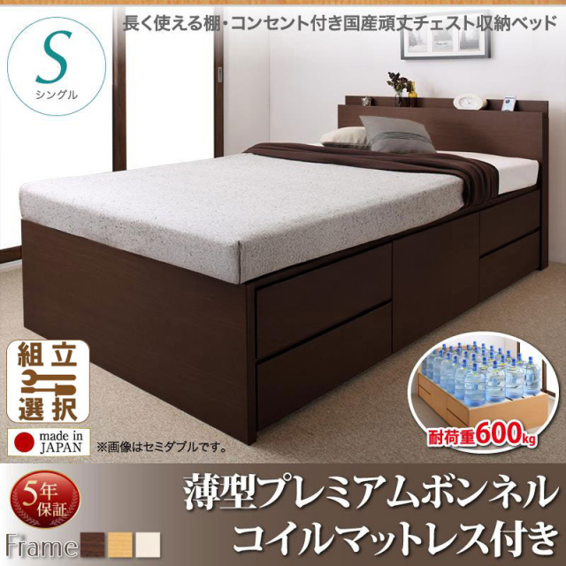 デザイン、マットレスの硬さ、組み立て安さはいいが、ベッドに上がるとギシギシ鳴るのが気になってしまいます。